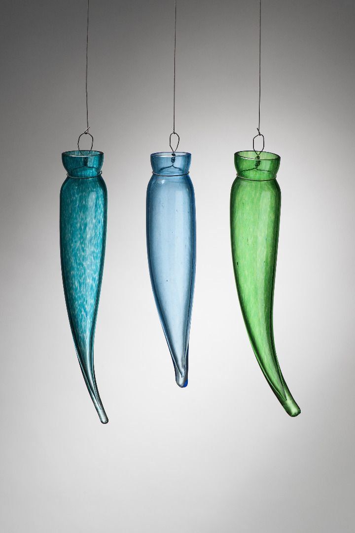 Moni esine on saanut alkunsa hyvinkin arkisista käyttötarkoitusajatuksista, mutta jo valittu valmistusmenetelmä – esimerkiksi kulhossa vapaasti puhaltaminen, puntteliin siirtäminen ja auki driivaaminen – tekee siitä yksilön ja arvokkaan oloisen. Kulhoja onkin päätynyt kastemaljoiksi ja maljakoita arvokkaiksi lahjoiksi.